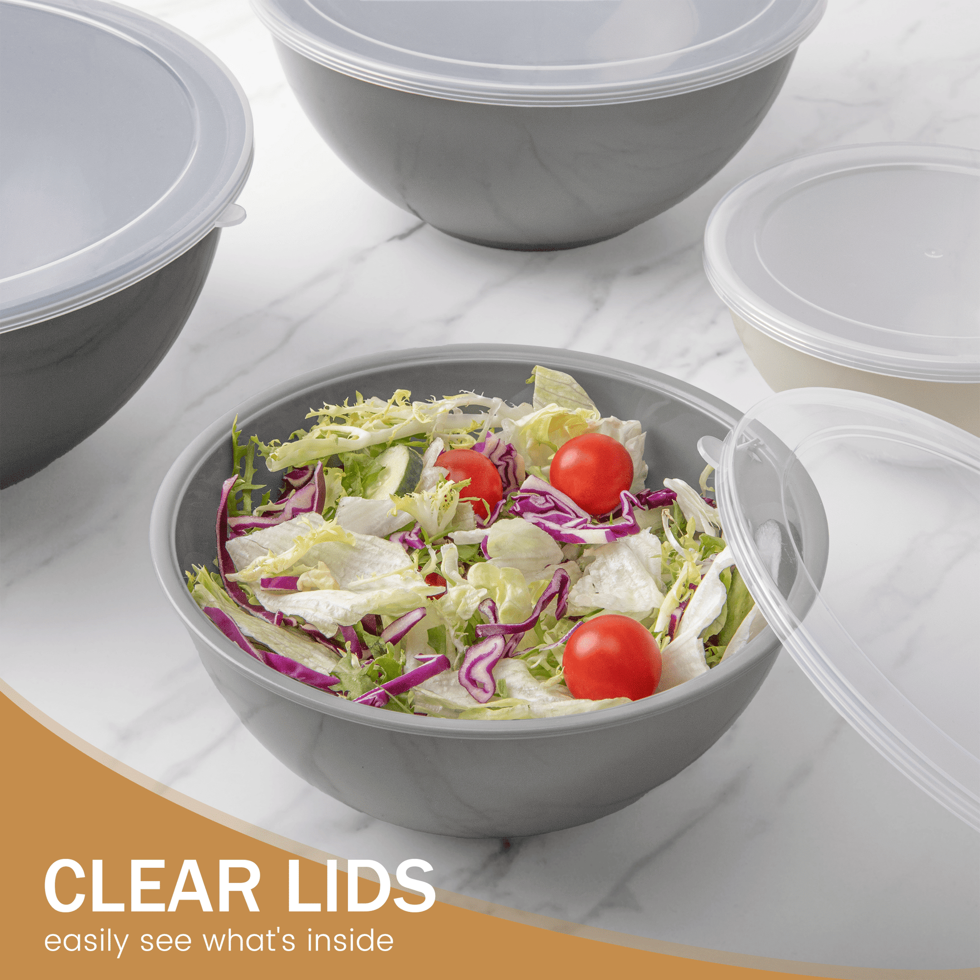 6 Sizes to Satisfy Your Various NeedsGPED mixing bowl sets feature 6 bowls designed to conveniently nest together for space-saving storage. The sizes range from small (0.32 qt) to extra-large (5.8 qt) to provide a versatile set that's ready for all your mixing needs.Fresh Food StorageOur plastic bowl sets feature airtight lids for fresh and secure food storage. Whether you're saving leftovers, meal prepping, or storing ingredients, these bowls are incredibly convenient with their tight-fitting lids and durable plastic material.Meal Prep, Baking and CookingThe versatile set can be used for fruit storage, salads, baking, food preparation and food storage. These bowls are deep and durable, perfect for your daily home table use, making your cooking and serving experience all the more pleasurable.
