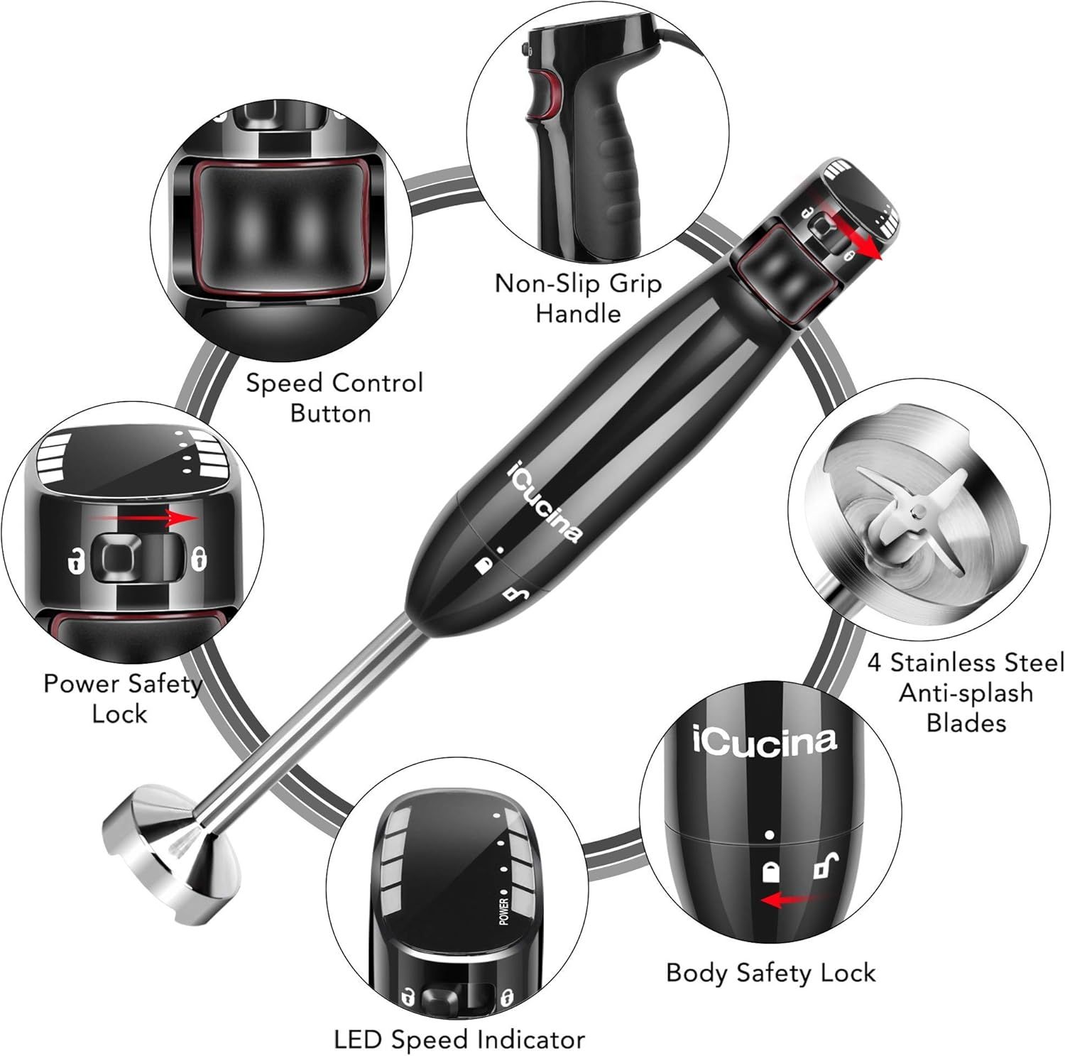 Variable Speed & Ergonomic Design: The non-slip, comfortable rubber handle ensures easy handling. With variable speed control, you can adjust the blending power simply by applying different levels of pressure to the button.
