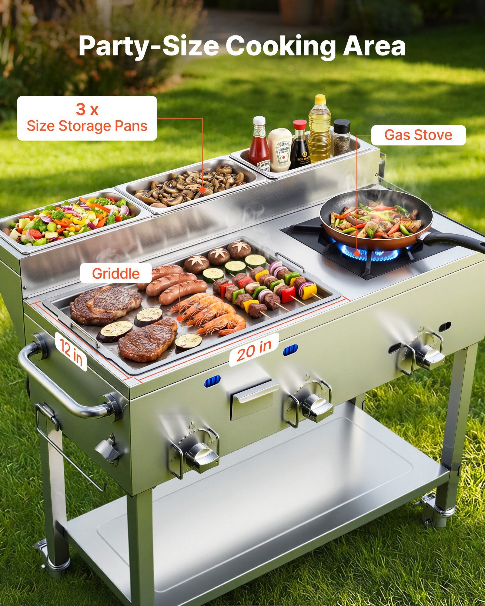 2.Fast & Even Heating: Equipped with 3 burners with separate controls, it delivers up to 34,800 BTU for quick, consistent cooking every time