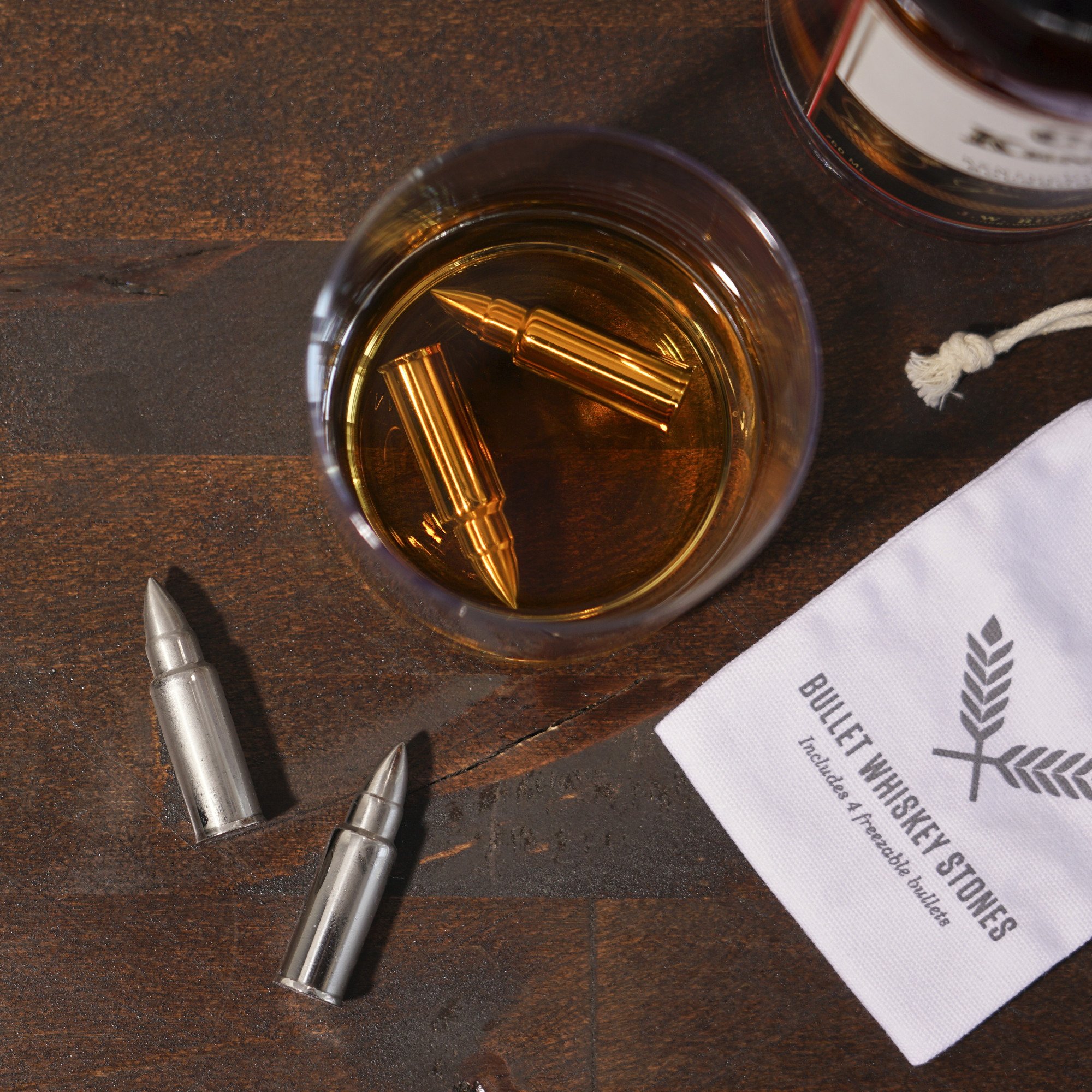 When it comes to chilled libations, these stainless steel bullet whiskey rocks are the sharpest shooters in the industry, keeping liquor cooler and less diluted than traditional ice accessories. Pour spirits on the rocks for a stone-cold killer taste.