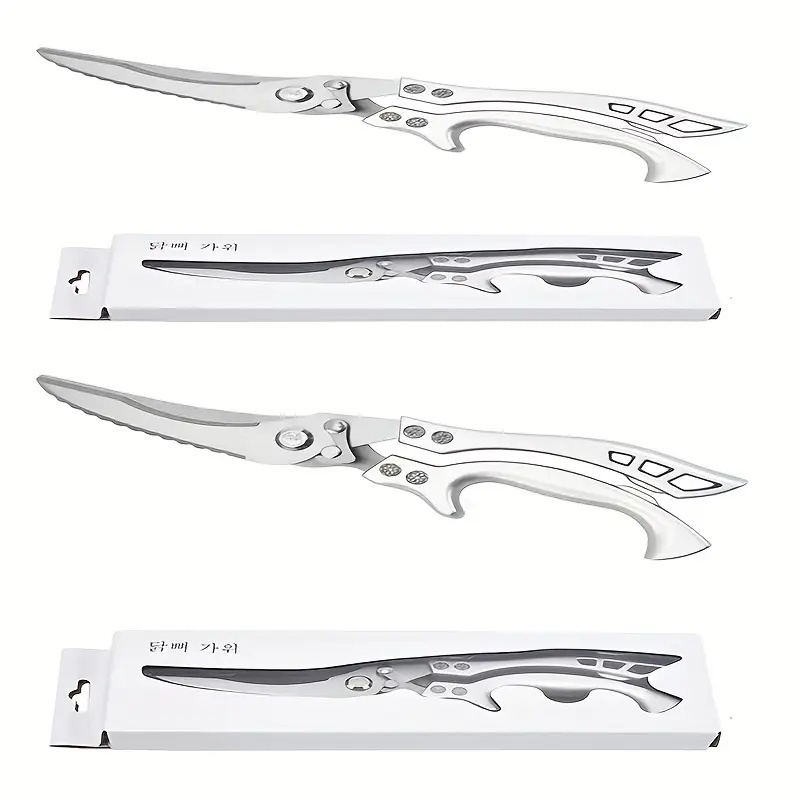 German industrial grade heavy-duty stainless steel kitchen automatic rebound scissors - professional multifunctional poultry scissors (1/2 piece set)